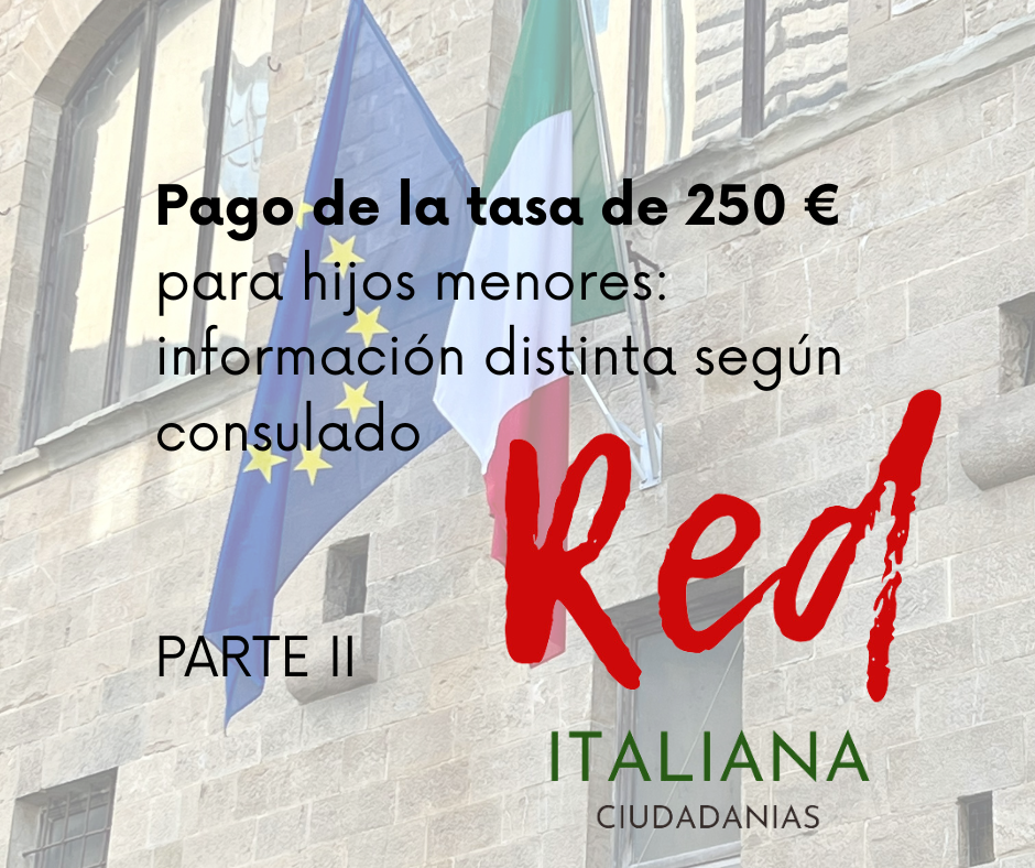 En este posteo muestro lo que indica la web oficial del Consulado Italiano de CABA sobre el pago de la tasa de 250 € para hijos menores, en el marco de la Ley n.º 74/2025
